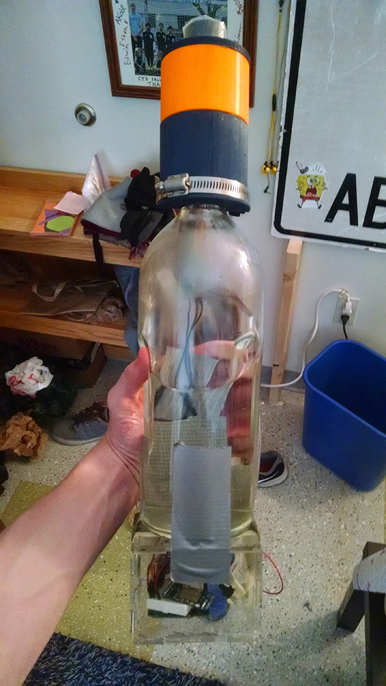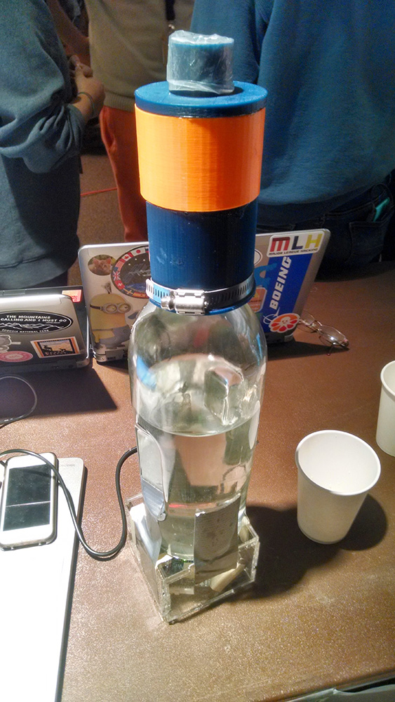 A few classmates and I participated in MakeMIT, a hardware hackathon. We were inspired by a teammates grandfather who lived alone and, while medically allowed to consume alcohol, often overdid it. We wanted a solution to allow moderated alcohol consumption without constant monitoring by a person. So, we built an internet connected bottle that can keep track of individuals pouring drinks and in turn, the number of drinks they likely had.