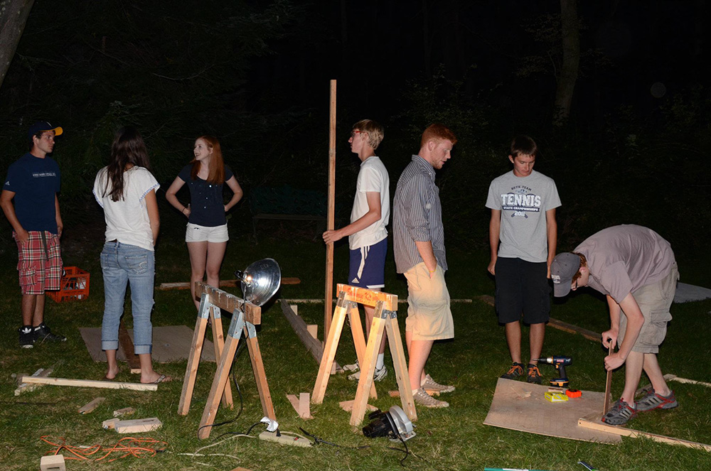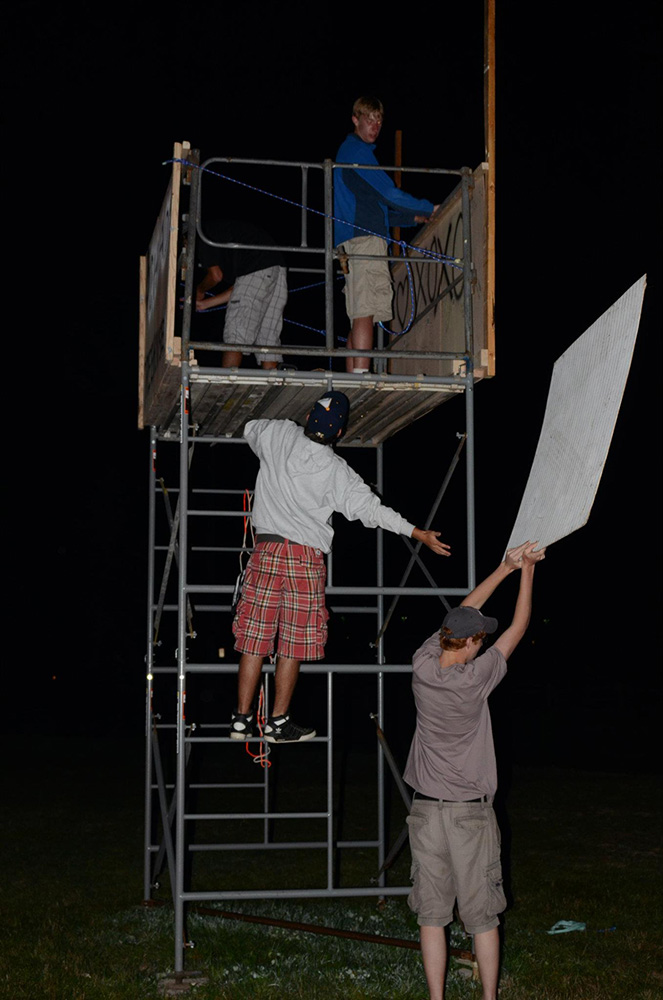 During band camp, the director stands on scaffolding to get a better view of the band's formations. It earned the nickname of Chad's treehouse because our director's name was Chad and he looked very young.
